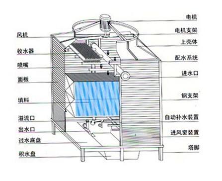 1.冷卻塔填料:逆流式冷卻塔填料填充在冷卻塔內(nèi)部。如果布水不均勻,很容易造成某些區(qū)域的凍掛,特別是進(jìn)風(fēng)口周?chē)Kc冷空氣充分接觸,降溫迅速而明顯,容易結(jié)冰。冰并逐漸積聚。